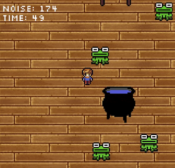This was my third game and I wanted to incorporate sound for the first time. The theme made for an opportunity to focus on sound effects as a central part of the game. Each action creates noise and you must be careful with it. Additionally I wanted to experiment with the original gameboy resolution of 160x144 pixels. It's very limiting and I had to zoom out to make the maze portion easier.